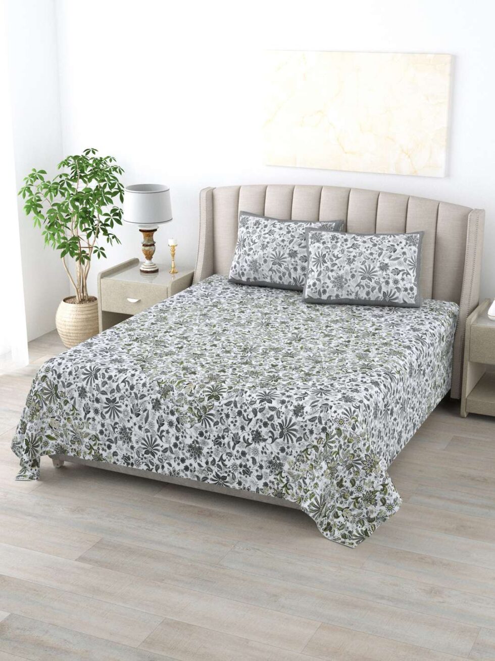 100% Pure Cotton Traditional Printed Bedsheet for Double Bed King Size Bedsheet with 2 Pillow Covers