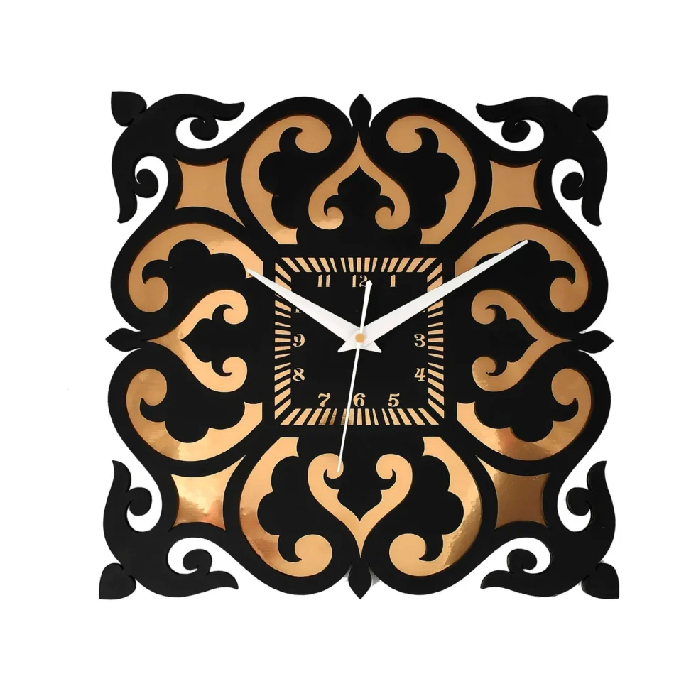 Designed with a keen eye for detail, this decorative watch features an intricate and elegant pattern with a striking dual color scheme of black and metallic gold. The unique square shape and luxurious design are crafted from premium quality wood, ensuring durability and longevity. The silent, non-ticking movement ensures a peaceful and calm environment, making it perfect for your living room, bedroom, office, or hall.