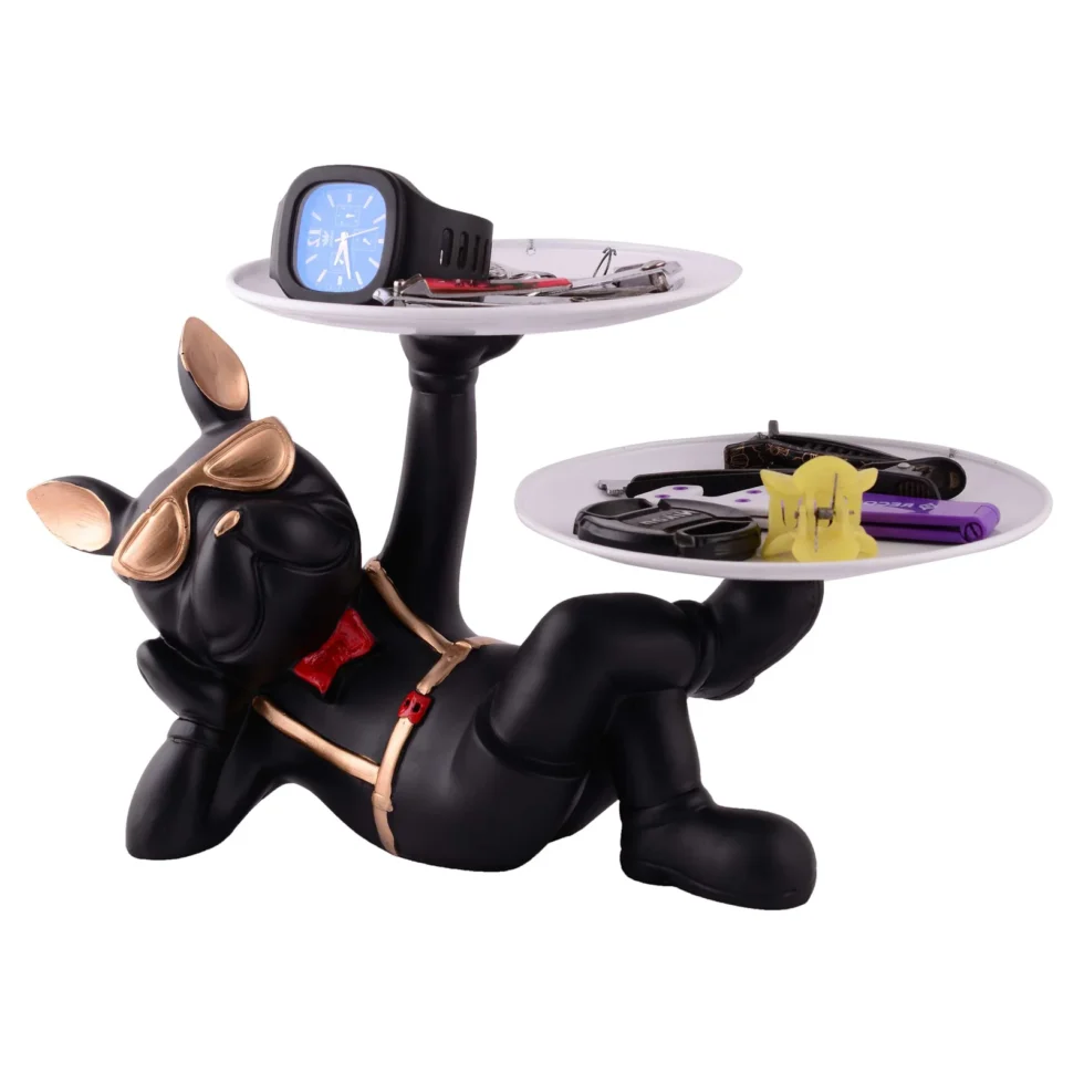 Modern Cool Dog Showpiece with Plate | Resin Tabletop Decor for Home & Office