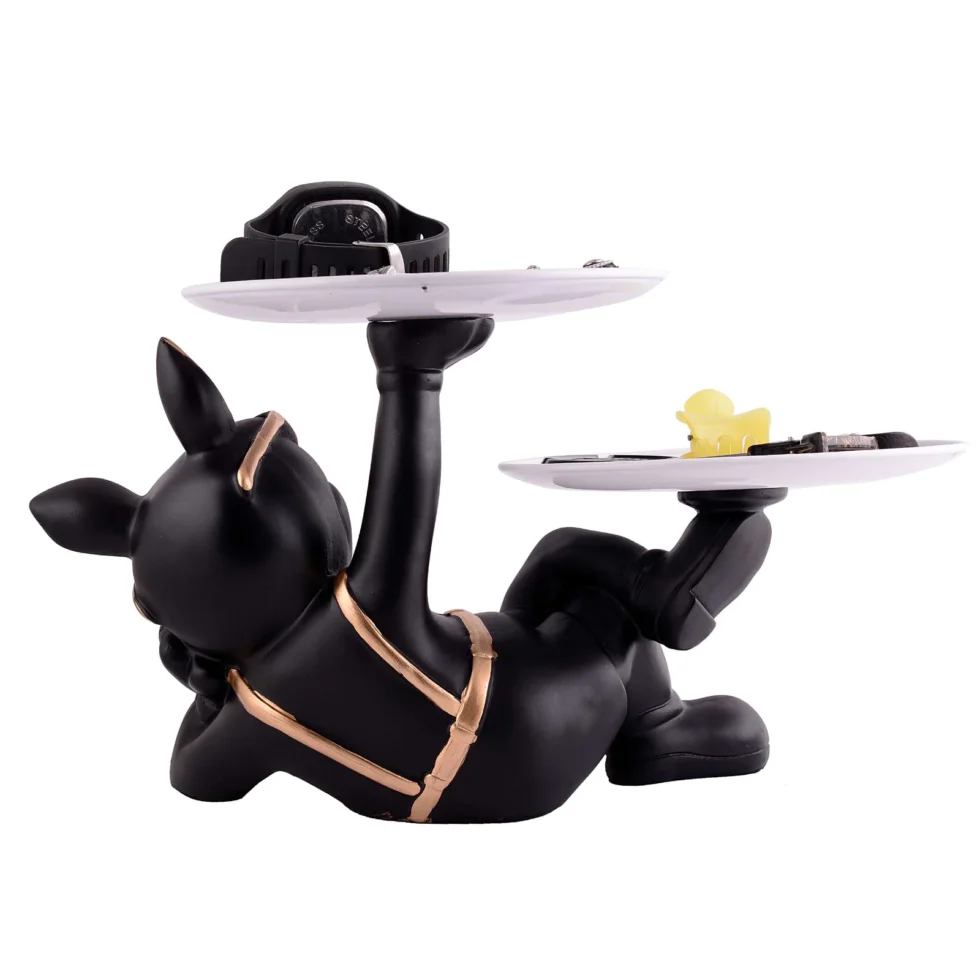 This elegant resin dog showpiece with a plate adds a modern, artistic touch to any room. Perfect for tabletops in your office, living room, or bedroom.
